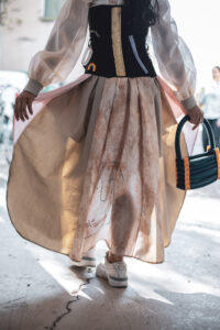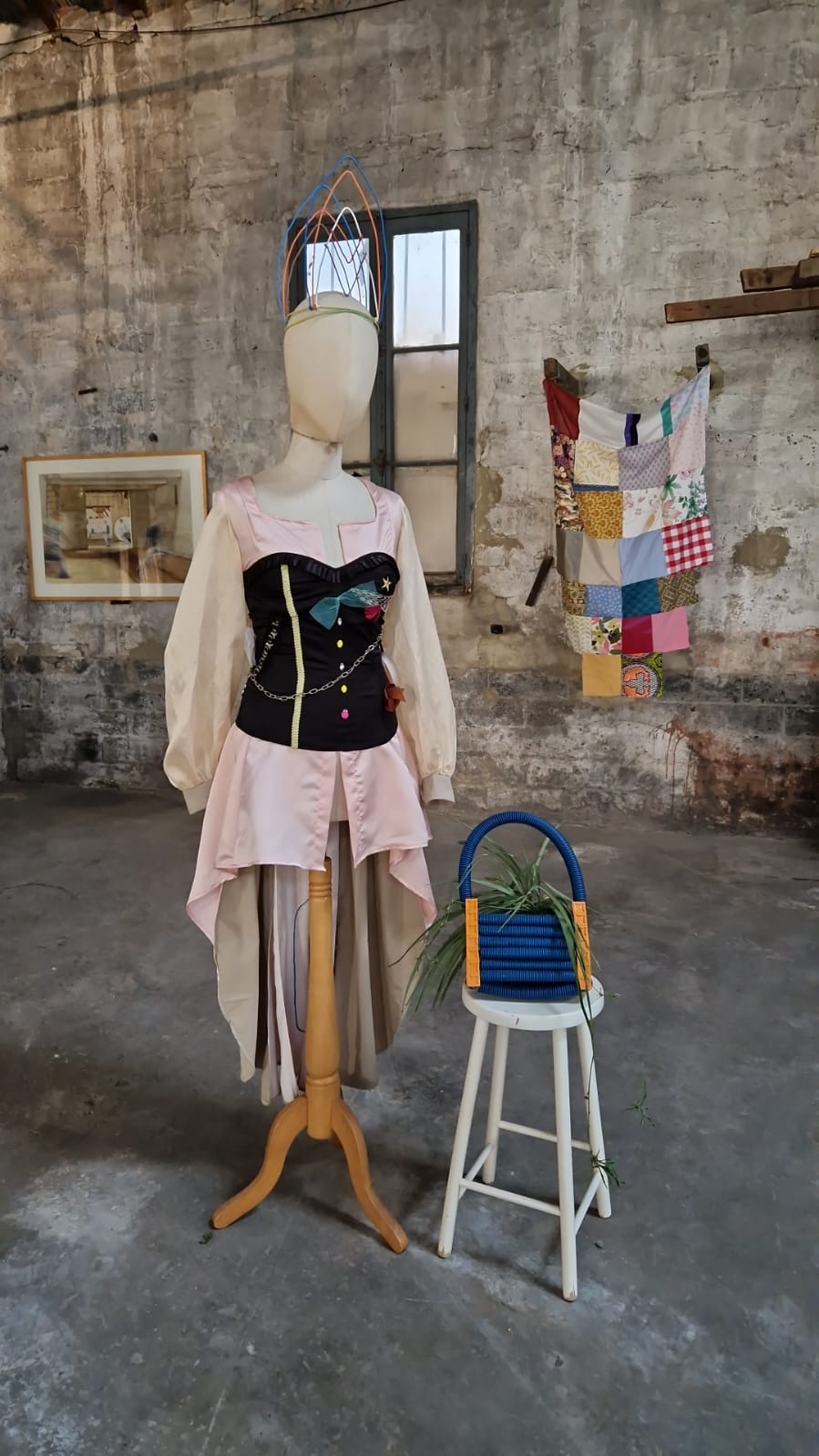 Cette œuvre, façonnée par des influences culturelles et historiques, réalisée dans d’anciens vêtements, des chutes de tissu et des déchets de construction, prend toute son ampleur au sein de cette exposition qui invitait à nous questionner et à regarder où est notre place, quel est notre impact dans le monde, du plus local au plus global.